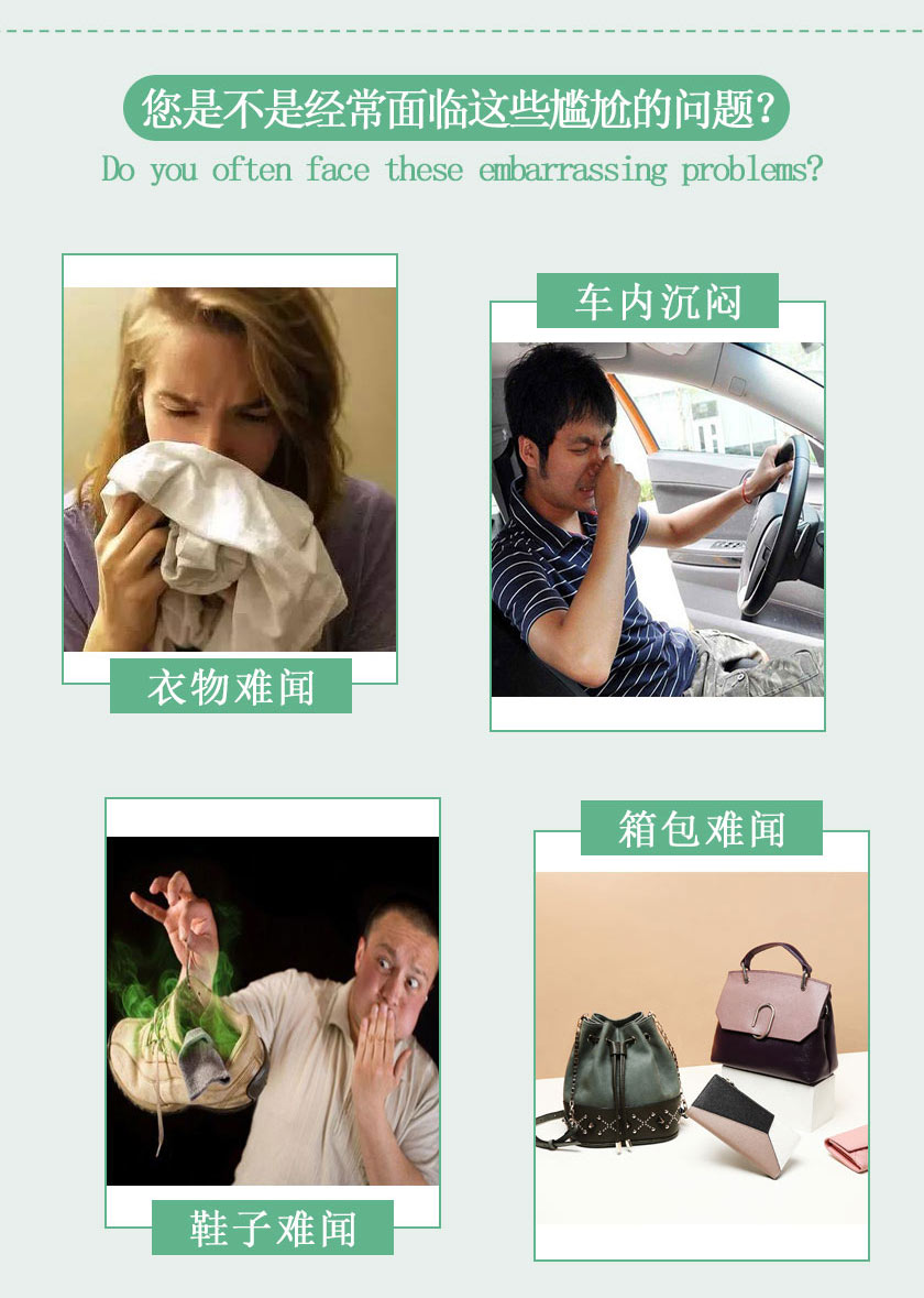在生活中,我们总是会面临这些尴尬的问题,衣物容易有异味、鞋子难闻 、衣柜难闻、箱包难闻等。